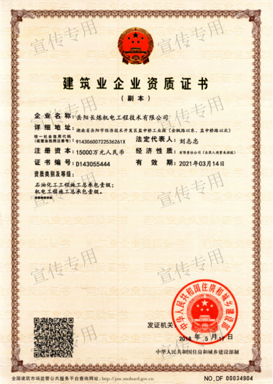 石油化工工程、機電工程、建筑工程、電力工程、消防設(shè)施工程、防水防腐保溫工程、環(huán)保工程施工.消防設(shè)施維護保養(yǎng)檢測工程、污染治理設(shè)施運行服務(wù)工程、電子與智能化工程、雷電防護裝置檢測工程、模板腳手架工程、各類施工勞務(wù)作業(yè):